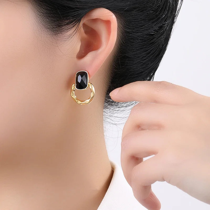 French Black Geometry Earrings - 2025 Trending Metal